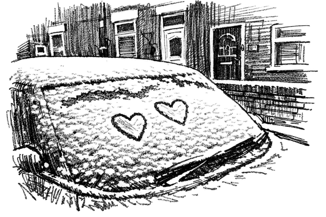 lovers paint hearts into the frost and ice on windscreens, their breath fogging up the glass like cheap sex in a doorway. rain drizzles down, soft and useless, on rows of scooters hunched in the alley, seats glazed with ice, waiting for some fool to come along and chip it off with a credit card