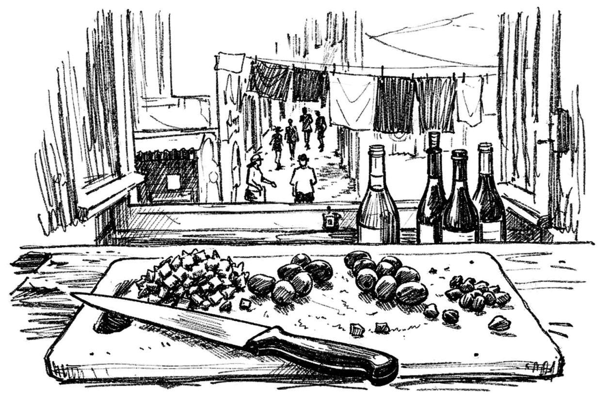 crank the fucking burner till the blue flame goes that sick blue, and throw in those greasy little capers, let them jump around like drunk bastards on a hot tin roof, anchovies too, those smug salty pricks strutting like they own the pot. slice the onions thin, onions crying their cheap tears, garlic stinking up