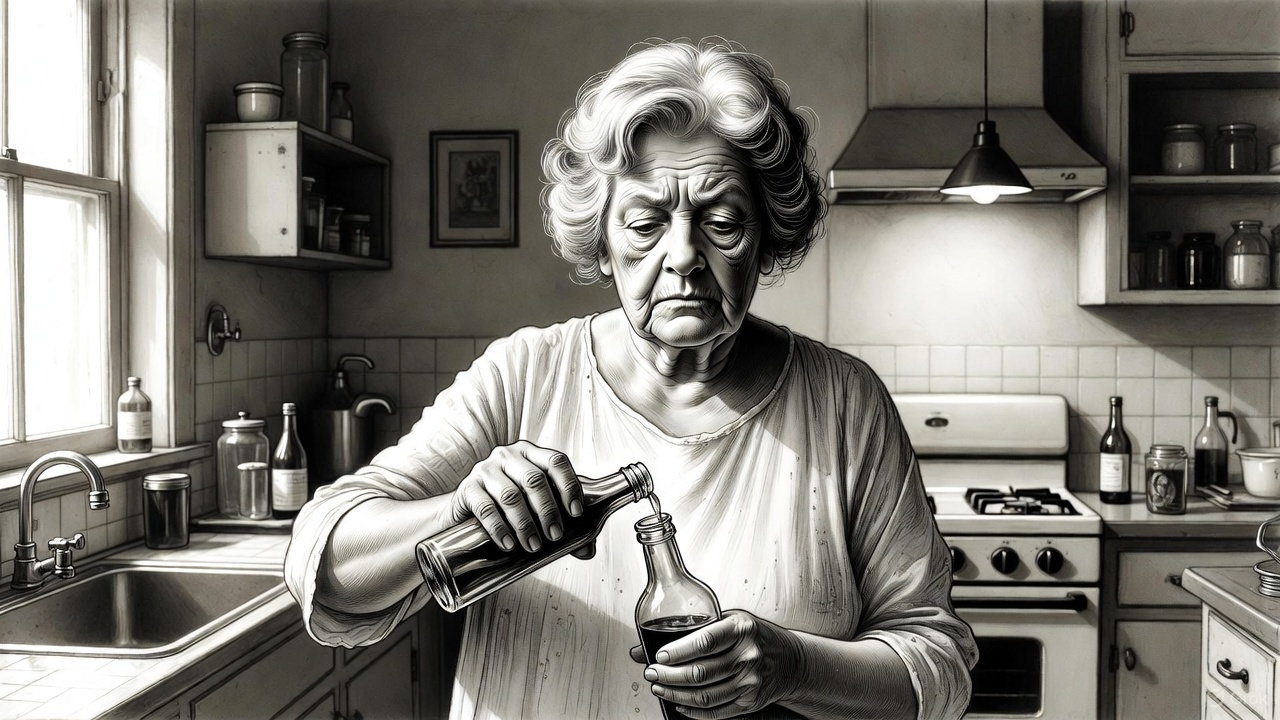 And there she is again, my gran, a distant memory, elbows deep in flour and cinnamon, sliding that apple pie into the oven like it could save somebody. While it browned, she’d be at the table with a funnel, pouring the Mainstay into old Mainstay bottles, cutting it with water so my uncle wouldn’t drown so fast. His liver already yellow as old newspaper, floating in and out of some charity ward while machines beeped like this same fucking clock. She never said much, just worked quiet, hands steady, pretending a little dilution might keep death from knocking too loud.